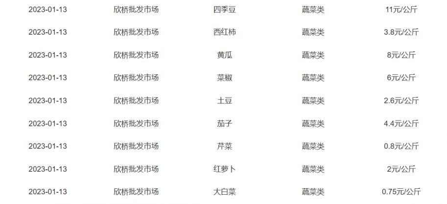 咸阳菜价案例分析