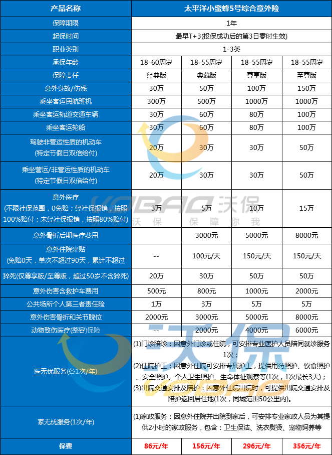 2、意外保障:提供全面的意外保障,包括意外伤害身故、残疾、医疗费用等,无论你在工作、生活还是旅行中遭遇意外,都能得到及时的帮助和支持。